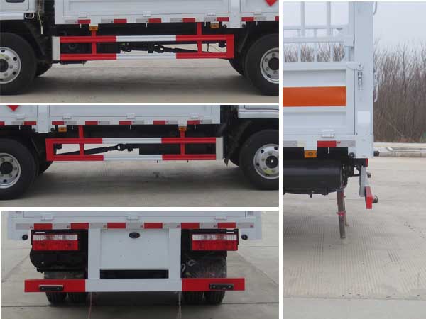 | 随底盘选装驾驶室,选装燃油箱,电瓶,尿素罐,储气筒左右安装位置;选装厢体外观,选装无栅栏;选装起重尾板(收起状态水平长度为280mm),尾板质量为350kg,选装不同厂家尾板及尾板样式;运输具有**容器(瓶)包装的介质类项号:2.1,2.2;该车为危险品货物运输车;仅采用前轮盘式制动器,前置排气管,子午线轮胎,限速装置的底盘,限速80km/h;转向轮安装爆胎应急防护装置;发动机CY4BK461,CY4BK161,YCY24140-60,D20TCIF1,D25TCIF1,CA4DB1-11E62,CA4DB1-13E6,CY4BK361,Q23-115E60,Q28-130E60对应油耗申报值均为:16.2L/100km;该车安装具有卫星定位功能的行驶记录仪;ABS厂家及型号:襄阳东风隆诚机械有限责任公司/ABS/ASR-24V-4S/4M;侧面防护及后下部防护装置材料材质:Q235,连接方式:焊接加螺栓连接;后下部防护装置断面尺寸(宽×高):50×100(mm),离地高度:460mm;选装圆形后防护,连接方式:焊接加螺栓连接;后下部防护装置断面尺寸为:Φ110mm,离地高度:400mm;该车型可选装ETC车载装置. | |||
